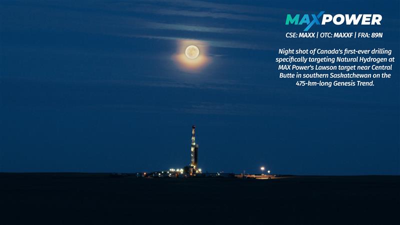 MAX Power Mining (CSE: MAXX) (OTC: MAXXF) (FRANKFURT: 89N) has begun drilling Canada’s first-ever Natural Hydrogen well at its Lawson target near Central Butte, Saskatchewan, marking a milestone in domestic clean energy exploration. The well is the first in a multi-hole program across the 475-km Genesis Trend, Canada’s largest permitted Natural Hydrogen land package. Operated by Stampede Drilling’s 24-person tele-double rig crew, the campaign underscores MAX Power’s leadership in advancing hydrogen science and technology. CEO Mansoor Jan called the event “a remarkable achievement” and confirmed the Company will present its Genesis Trend strategy at next week’s global Natural Hydrogen conference in Paris.
