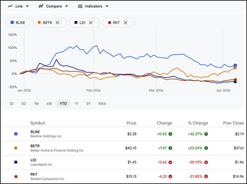 The company’s share performance since the beginning of 2026 reflects a positive response to these developments. Year-to-date, Beeline’s stock has outperformed both broader market indices and several mortgage-sector peers. While the Nasdaq Composite and S&P 500 recorded declines over the same period, and competitors faced downward pressure, Beeline posted gains exceeding 30%. These movements are not solely attributable to a single partnership.