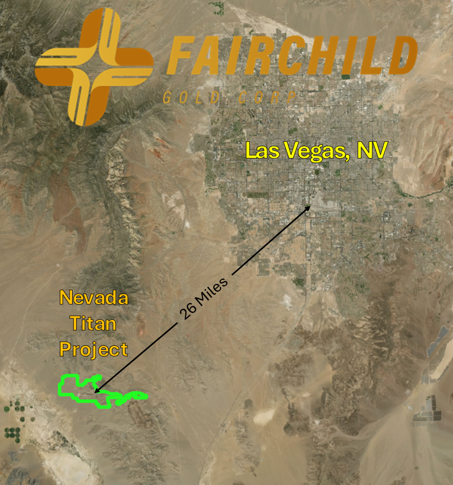 - The project located approximately 26 miles southwest of Las Vegas, hosts geological features consistent with a possible porphyry-style system. See Fairchild’s Nevada Titan Deck for more details
